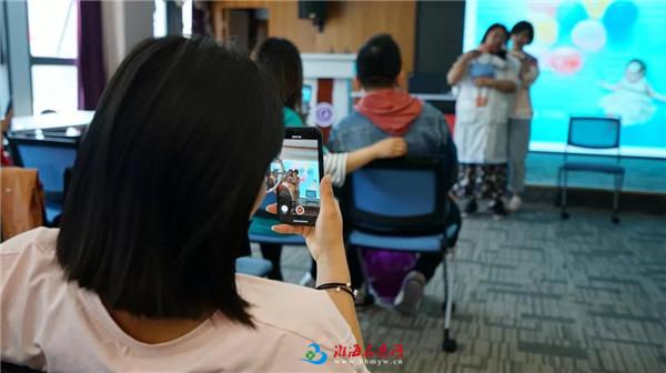 现场的准爸妈们不仅全神贯注地听着老师的讲课,还不时拿出手机“咔嚓咔嚓”记录下授课要点和老师的演示动作,还有几位准妈妈甚至将老师的讲课内容全程录了下来,看样子准备回家好好温习呢!