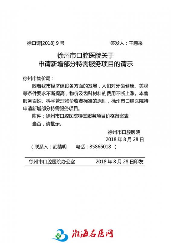 徐州健康:徐州市口腔医院关于申请新增部分特需服务项目的请示