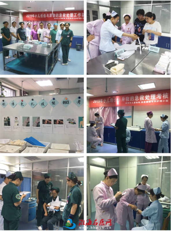 此次培训由急诊科牵头,从6月11日开始,培训人员为应急救援库护士、院前急救护士、专科小组成员,培训内容分为理论和操作两个部分。理论培训借助护理助手APP,操作培训以工作坊的形式展开外伤、异物两种常见急症的急救处理手法,此次操作培训小组化、真实化,现场演示与指导头部外伤包扎法、胸部外伤包扎法、手腕外伤包扎法、上臂骨折固定法、婴儿异物急救处理、儿童海姆雷克手法,徐州市儿童医院应急护理人员对此次培训方式非常满意。