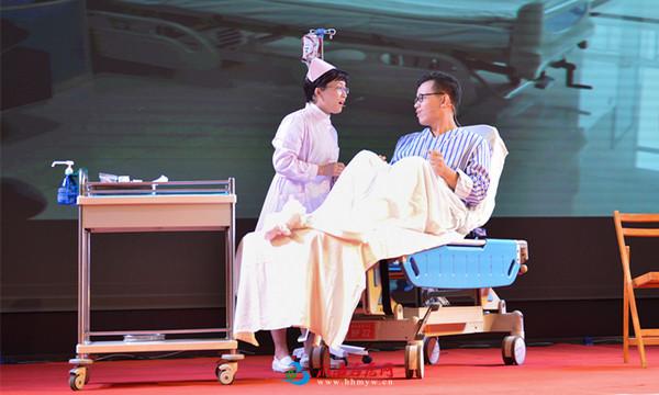 情景剧《为了生命的守护》调侃的语言,诙谐的动作,四位演员围绕18项核心制度展开的一个小剧场。为了群众的健康,工作中,我们一定把牢医疗工作底线,筑牢医疗质量的安全防线。