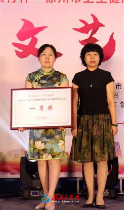 本次活动,我市共有14家医疗卫生单位参赛。市一院选送的文艺节目诗朗诵《腾飞吧 健康徐州》喜获一等奖,徐州市卫生健康委员会党委委员、副主任尹葆华为一等奖单位颁奖。