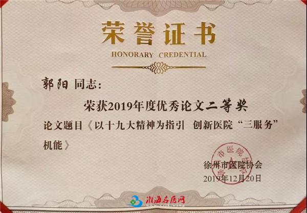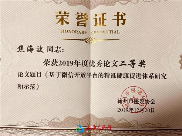 焦海波、梅雪、郭阳撰写论文获徐州市医院协会2019年度优秀论文表彰