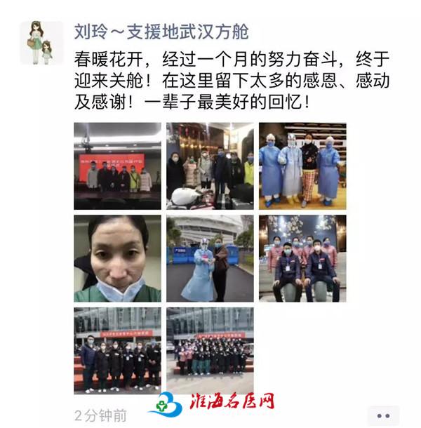 我的这条微信分享中,有我们出发时的照片、有自己脱下防护服的压痕、有经过我们照顾出院的患者、有我们最后关舱的合照!