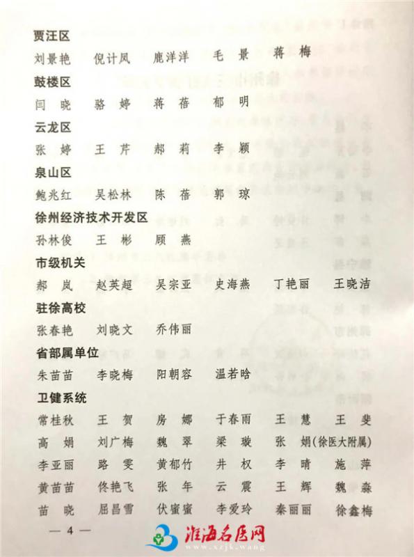 为表彰先进、树立榜样,积极发挥先进妇女典型的榜样引领作用,市妇联决定授予李瑞芳等160名同志“徐州市三八红旗手”称号、丰县凤城街道张五楼卫生院等61家单位“徐州市三八红旗集体”称号。徐州市中医院井权和李晴同志获得“徐州市三八红旗手”荣誉称号。