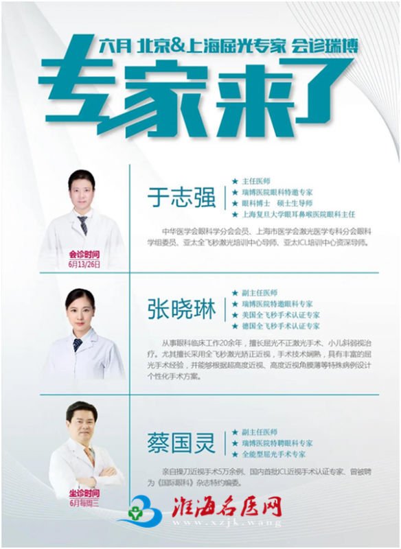 徐州瑞博医院眼科屈光手术专科是瑞博医院的重点高科技医疗专科,拥有一批临床经验丰富、手术技术娴熟的全飞秒手术认证专家和ICL人工晶体植入手术认证专家,除配备先进的德国蔡司SMILE3.0全飞秒手术系统、飞秒LASIK手术系统、阿玛仕750s Smart全激光等先进设备,还率先引进瑞士新一代人工晶体瑞士STAAR的EVO-ICL,利用大数据智能系统,以定制化全优治疗方案、精细的准确度、轻柔的治疗、人性化终身术后护理,给屈光手术创造了更加舒适、安全的手术体验。