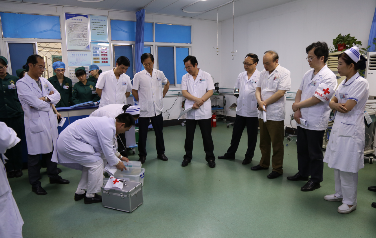在此次急救应急演练中,由市一院院长杜钟祥组成的演习领导小组负责整个演习方案的确定、现场指挥和总结点评,副组长鄂云翔、甄宗礼、赵亮、金风和现场总指挥赵亮、沈鹏协调宣传处、医务处采集现场演习的影像、照片资料,向新闻媒体发布有关信息。