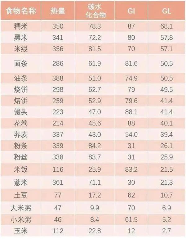 从上述表格中我们可以看出白米、白面等精制主食升糖指数较高,对血糖影响较大,因此应适当减少精细主食的摄入。