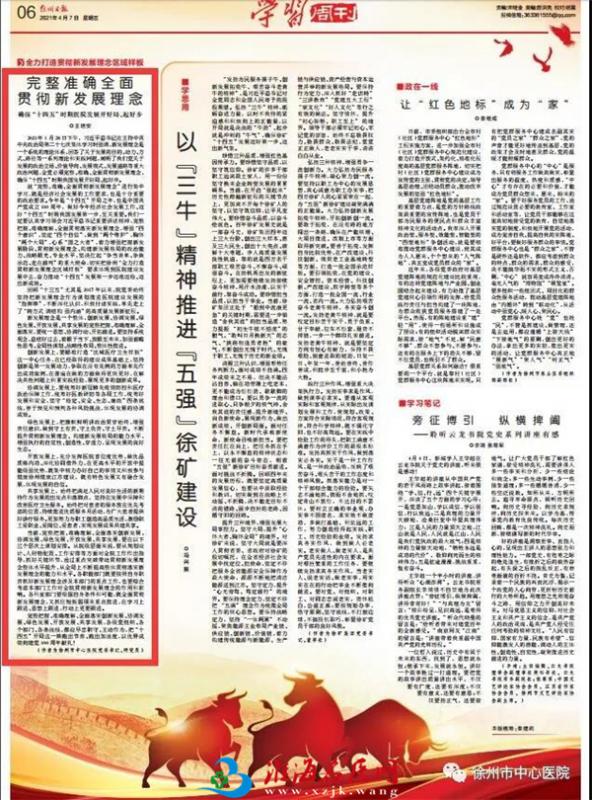 4月7日,《徐州日报》刊发徐州市中心医院党委书记王培安署名文章《完整准确全面贯彻新发展理念确保“十四五”时期医院发展开好局、起好步》。