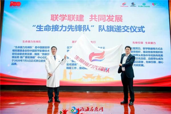 活动举行了“生命接力先锋队”队旗递交仪式。中国器官移植发展基金会和中国医学影像技术研究会联合党支部书记、中国器官移植发展基金会执行理事长赵洪涛,将“生命接力先锋队”队旗递交到王人颢书记手中。