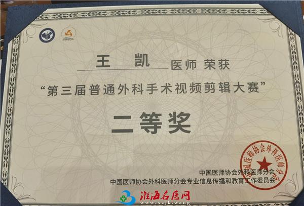 2021年7月16日,第三届全国普通外科视频剪辑大赛决赛在上海拉开帷幕。徐医附院胃肠外科王凯博士入围决赛赛场,经历整整一上午的4小时全封闭的现场视频剪辑,对1个半小时的手术视频进行了修剪、美化、标注、完善手术资料等,完成了一例8分钟的完整的腹腔镜直肠癌根治术的手术视频剪辑作品参赛。经过现场激烈的选拔和角逐后,王凯博士作为江苏地区唯一入围选手,得到了评委们的一致好评,荣获本次视频剪辑决赛结直肠组的二等奖。
