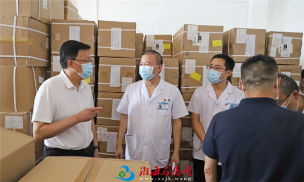 8月2日上午,市政府党组成员吴卫东带领市物资保障组成员单位领导到市传染病医院督查疫情防控物资储备工作,院党委书记王为民、院长苏珂、副院长王红艳陪同检查。