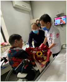 随后,曹院长仔细询问老母亲病情详细了解他们的家庭情况和存在的困难。胡智艳哥哥说:“前几天,因流食助推器供应不上,母亲无法进食,家里人特别着急,最后是医院派人给送来了解了燃眉之急。真是太感谢了。”范玉娇副书记表示:“请家里人安心、放心,医院会随时关注抗疫一线医务人员的工作与生活,如果家属们有什么困难,可以及时向医院反映,我们将会尽最大努力给予解决,让前线的战士没有后顾之忧。”