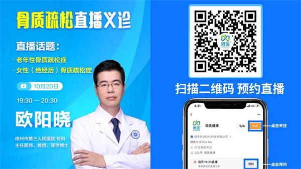 10月20日(今天) 晚7:30市肿瘤医院骨科副主任欧阳晓教授将以“骨量早筛查,骨折早预防”为主题,走进直播间带您揭秘骨质疏松及骨质疏松性骨折