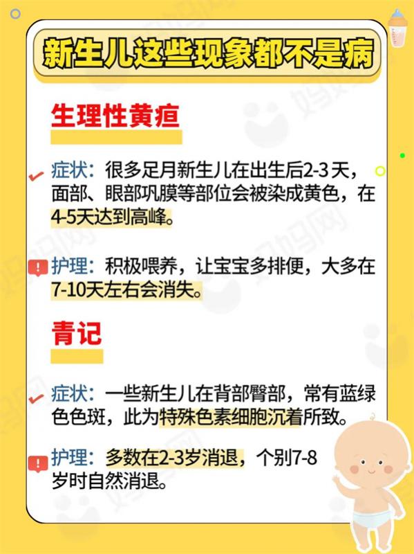 除了新生儿护理误区,一些新生儿常见的生理性现象,宝爸宝妈也要了解,避免把它们当做重大疾病来处理,以免引起不必要的慌张。