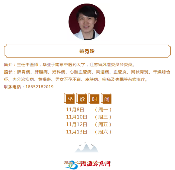 铜山区中医院11月8-14日中医专家坐诊时间表