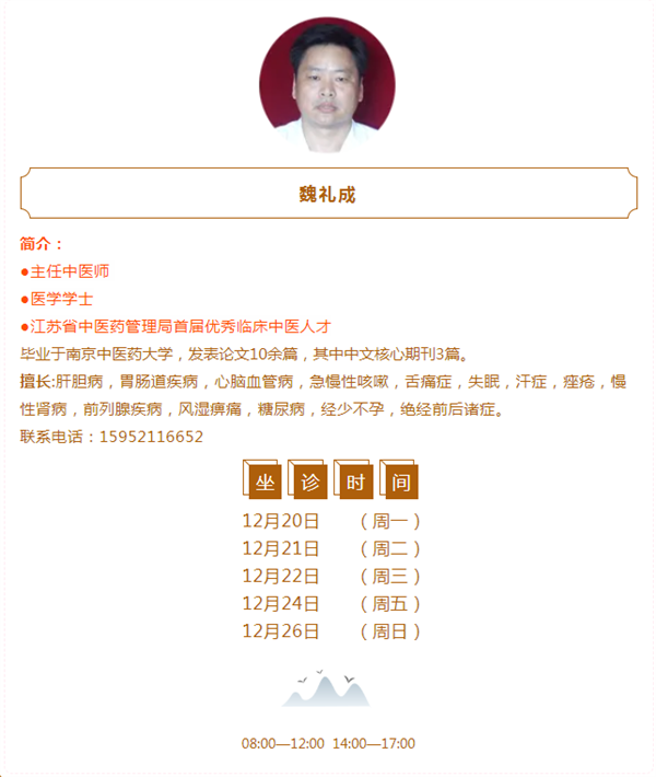 铜山区中医院12月20-26日中医专家坐诊时间表