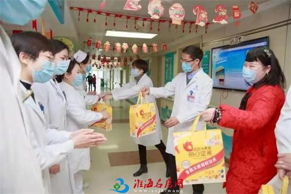 2022年2月1日,正值大年初一上午,徐州市儿童医院党委书记田明、院长张洪永带领医院领导班子成员和部分职能科室负责人来到临床一线,向春节期间仍坚守在工作岗位上的医护和后勤人员送去春节慰问,感谢职工们节日期间的付出,特别强调了今年节日期间的防控重点,并送上节日慰问品。