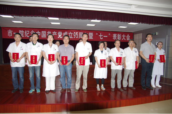 7月1日下午,徐州市第一人民医院召开了纪念中国共产党成立95周年暨“七一”表彰大会,党委副书记、院长杜钟祥和党委副书记马乃营、副院长金风、纪委书记毕荣、工会主席王敏等其他领导及职能科室负责人、科主任、护士长、全院党员和入党积极分子参加了会议。会上,院党委对去年以来取得显著成绩的5个先进基层党组织、20名优秀共产党员和11名优秀党务工作者予以了表彰。