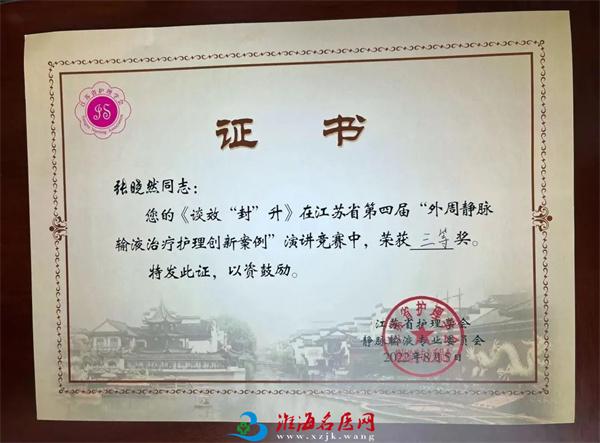 8月3日—5日,在江苏省护理学会静脉输液治疗专业委员会主办的江苏省第四届“外周静脉输液治疗护理创新案例”演讲竞赛决赛中,徐州市第六人民医院消化肿瘤科护士张晓然经过激烈角逐,最终斩获三等奖。