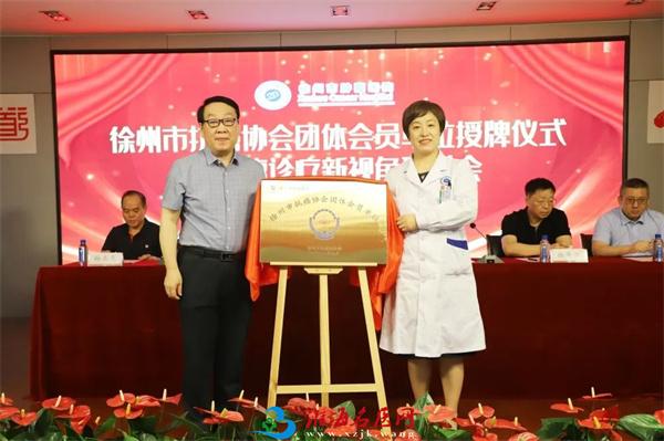 徐州市抗癌协会理事长王伟林、徐州市肿瘤医院执行院长赵鸿鹰共同为徐州市抗癌协会团体会员单位——徐州市肿瘤医院揭牌。