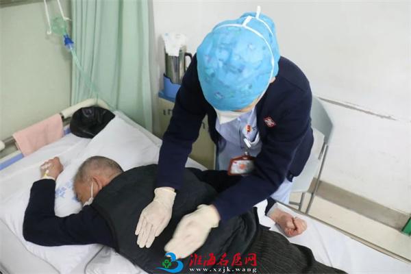武汉市第一医院呼吸与危重症医学科呼吸三病区护士长贺英为患者示范俯卧位通气