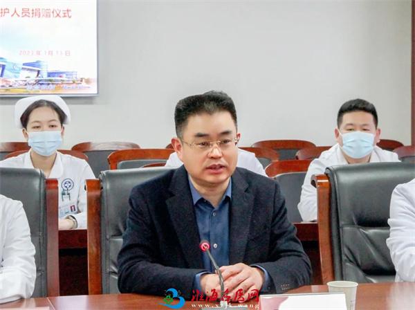 市一院党委书记、院长丁继存出席捐赠仪式并讲话。他回顾了三年疫情以来医院面临的巨大压力,以及围绕疫情防控和对感染者的救治重点作出的一系列部署和推进。他特别提出在疫情防控政策调整后,医院迅速反应,全院动员、统一部署,形成外科内科化、内科重症化的救治格局,一线医务工作者勇担当、善作为,冒着高感染的风险,顽强顶住疫情防控政策调整后的第一波重压,踏上重症救治的新征程。最后,他代表医院感谢全市企业家和市工商联对一线医护的关爱和慰问。