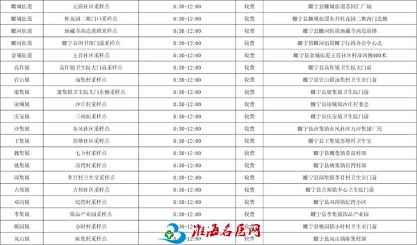 提醒:采样点服务时间可能会根据工作实际进行调整,请及时关注“徐州卫生健康”微信公众号官方信息。