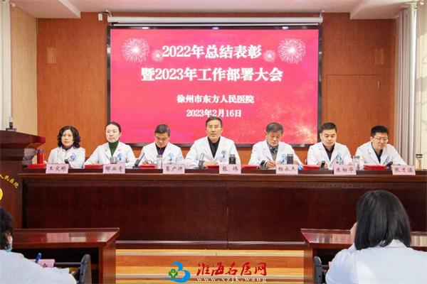 2月16日上午,徐州市东方人民医院召开2022年总结表彰暨2023年工作部署大会,总结工作、表彰先进、共贺新年、展望未来。院领导班子成员、全体中层干部及受表彰代表参加会议。大会由副院长葛广沂主持,党委副书记、院长杨永杰做2022年工作总结报告,党委书记张伟代表院党委做2023年工作部署。