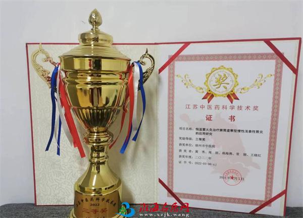 据悉,江苏中医药科学技术奖是2010年经省科技厅批准、国家科技部备案设立的江苏省中医药行业最高科技奖项,授予在中医药领域的基础研究、应用研究、传承和开发研究中取得优秀成果的集体和个人。