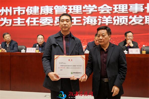 徐州市健康管理学会理事长缪华为主任委员王海洋颁发聘书