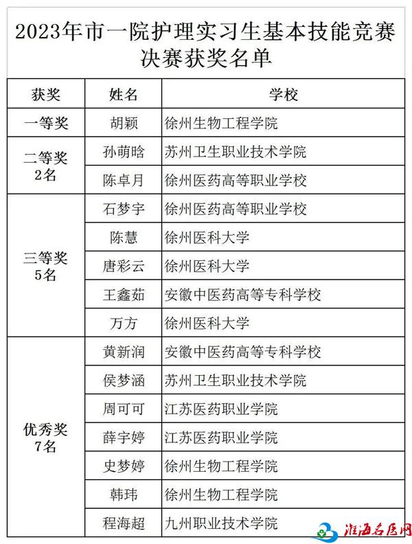 本次竞赛各实习院校的护生都非常重视,她们利用业余时间巩固理论、苦练技能,技能操作室每天都有她们的身影。经过充分的准备,决赛中她们从容自信,展示出了自己的实力和才能。经过激烈的角逐,徐州生物工程学院胡颖摘得桂冠。同时脱颖而出的还有苏州卫生职业技术学院的孙萌晗、徐州医药高等职业学校的陈卓月,两名优秀选手均荣获二等奖。此外,有五名选手获得了三等奖(其中三名选手并列),七名选手获得了优秀奖。