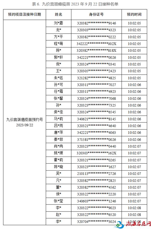 徐州市妇幼保健院成人预防接种门诊9月4日宫颈癌疫苗线上预约成功名单公示