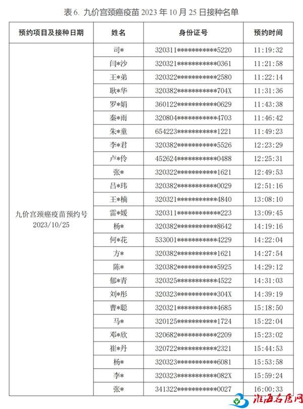 徐州市妇幼保健院成人预防接种门诊9月28日宫颈癌疫苗线上预约成功名单公示