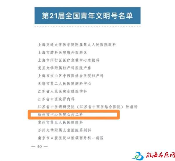 近日,共青团中央等23家全国创建青年文明号活动组委会成员单位联合印发《关于命名第21届全国青年文明号并进行星级认定的决定》,我院心血管内科二病区荣获“第21届全国青年文明号”,是徐州市卫生健康系统唯一荣获全国青年文明号的单位!