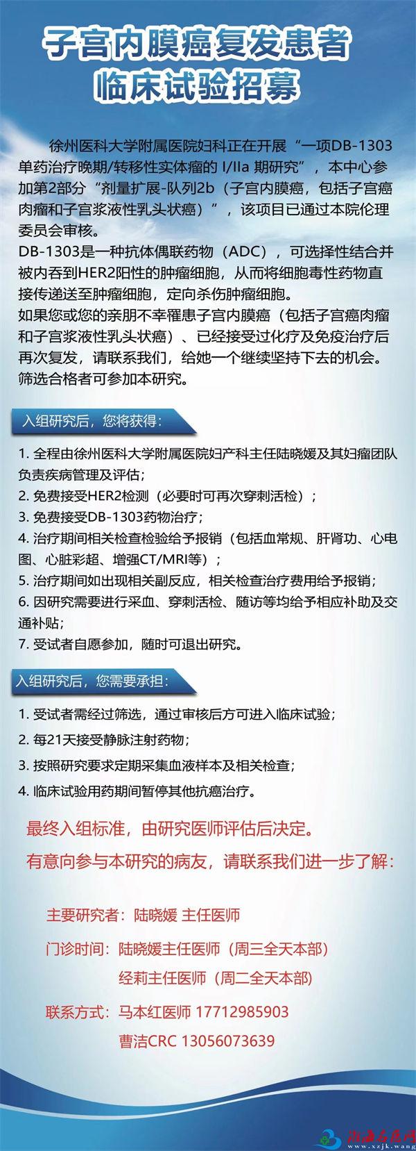 徐州医科大学附属医院招募子宫内膜癌复发患者临床试验
