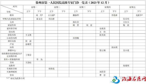 徐州市第一人民医院最新的门诊一览表出炉啦!有就医需求的朋友请查收!