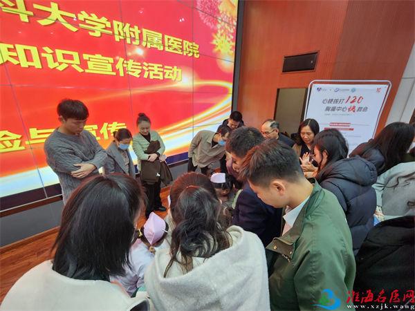为了增进广大师生应急救援意识及技能,徐州医科大学附属医院由副院长燕宪亮带队,医务处、胸痛中心、急救中心共同前往中国矿业大学举办主题宣传活动:“从‘心’开始—11·20应急救援科普知识宣传活动”。中国矿业大学工会主席陈仲元,中国矿业大学信息与控制工程学院党委书记程德强、副书记翟文艳,副院长刘海、陈平,以及来自全校各学院的300余名师生参加,现场气氛活跃,获得广大师生一致好评。现场互动中,胸痛中心联络员段洋主治医师及急救中心程任及董晔护理老师就急性心肌梗死的防治、如何自我救治及快速拨打120进行了细致的讲解,有针对性的答疑解惑及操作,现场气氛轻松热烈。
