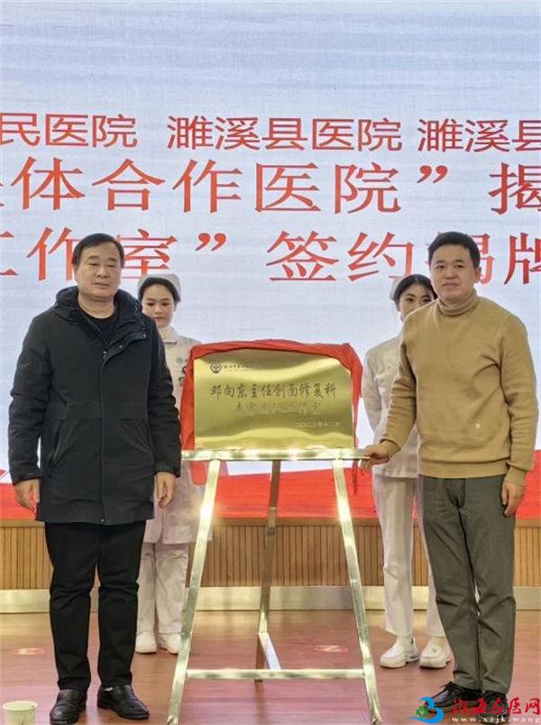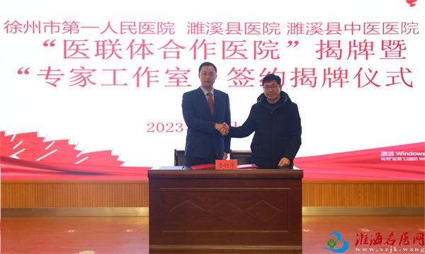 12月21日,徐州市第一人民医院与淮北市濉溪县医院、淮北市濉溪县中医医院的“医联体合作医院”揭牌暨“专家工作室”签约揭牌仪式在濉溪县医院举行。徐州市第一人民医院党委副书记刘峰,党委委员、副院长吴小进及相关科室负责人,濉溪县委常委、副县长王成,濉溪县卫健委党组书记、主任伯广宝,濉溪县医院党委书记杨发武,濉溪县中医医院党委副书记、院长刘浩,徐州市第一人民医院专家组成员,濉溪县医院、濉溪县中医医院党委班子成员及有关科室负责人参加仪式。伯广宝主持揭牌仪式。