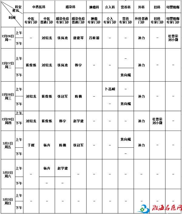 徐州市传染病医院门诊坐诊医生安排表(2024年2月26日-3月3日)