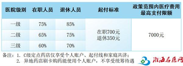 从表格中可以清晰看到,不同级别的医院,起付线、报销比例均不同;职工与居民,在职与退休,报销比例也不同。