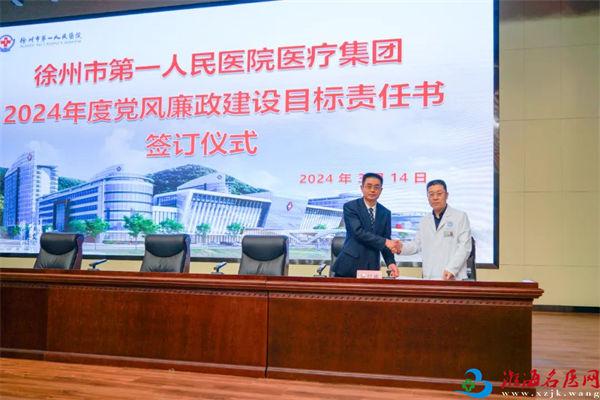 会上,医疗集团总院内科、外科、眼科、门诊医技、机关及铜山分院代表分别与医疗集团理事长、总院党委书记、院长丁继存签订了党风廉政建设目标责任书。