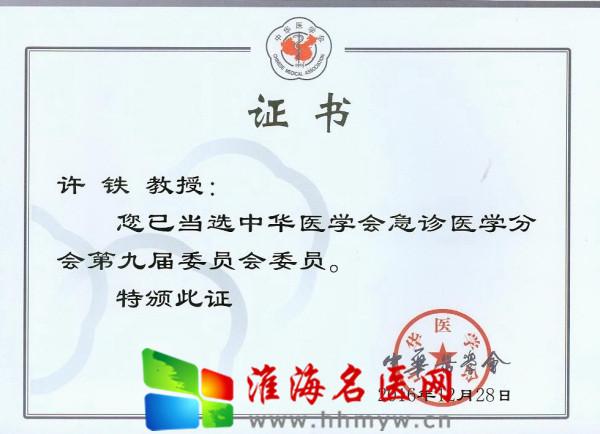许铁主任当选为中华医学会急诊医学分会第九届委员会委员