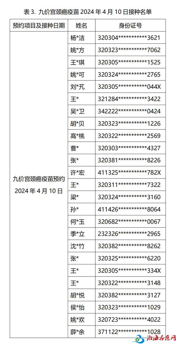 徐州市妇幼保健院成人预防接种门诊 4月1日宫颈癌疫苗线上预约成功名单公示