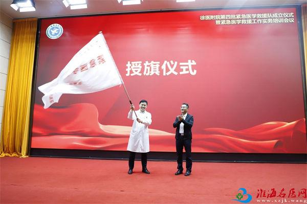 开幕式上,刘筱处长宣读了《关于成立第四批紧急医学救援队的通知》文件,并由顾帮朝主任向徐医附院应急队队长刘筱授予徐医附院紧急医学救援队队旗,参会领导和嘉宾为应急队队长、副队长及队员代表颁发聘书。