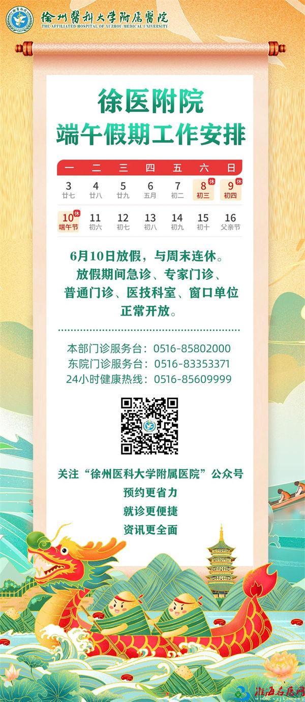 [摘要]:徐州健康: 2024端午假期就诊温馨提示1.放假期间本部、东院专家门诊、普通门诊、医技科室、服务窗口正常开放;2.假期内方便门诊、慢性病门诊停诊;3.建议您提前1-7天预约就诊,当日现场挂号为预