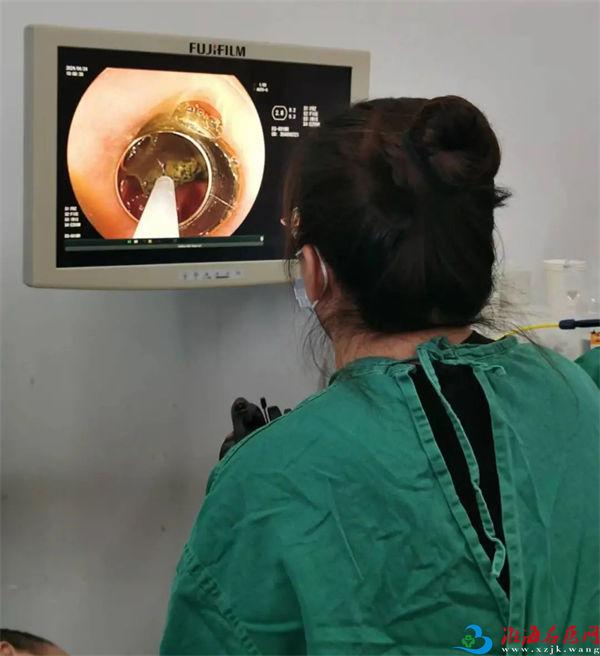 张莉再次将速度放缓,抓取成功后将异物收至透明帽内,确保从胃腔内向外拉取时不会划伤食道及纵膈, “好几处的粘膜充血、水肿、糜烂,说明已有破溃,在无法完全确定异物是什么的情况下,一定得小心,不能造成二次伤害。”