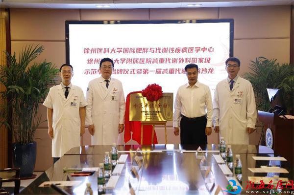 2024年8月21日上午,徐州医科大学国际肥胖与代谢性疾病医学中心、徐医附院减重代谢外科国家级示范单位揭牌仪式暨第一届减重代谢学术沙龙举行。徐州医科大学党委常委、副校长刘慎军,徐州医科大学党委常委、副校长、徐医附院党委书记吕凌等共同为“徐州医科大学国际肥胖与代谢性疾病医学中心”和“徐医附院减重代谢外科国家级示范单位”揭牌。来自学校、附院和科室的各级领导、专家同道共30余人齐聚一堂,共同见证了这一历史时刻。揭牌仪式由徐医附院普外科副主任张斌主持。