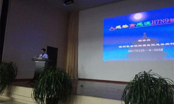 开幕式后,专题培训正式开始。首先,顾帮朝主任就《江苏省人感染H7N9疫情分析》做了专题报告。接着,徐州市疾控中心主任助理常桂秋以《徐州市人感染H7N9禽流感疫情防控简要分析》为题,就徐州市人感染H7N9禽流感的防控情况做了详细分析。随后,徐一附院急救中心主任许铁、感染管理科副科长茅一萍、急诊ICU主任吕建农和感染性疾病科主任颜学兵教授,分别做了《流感的规范化治疗》、《人感染H7N9禽流感院内感染防控》《重症社区获得性肺炎的诊治》、以及《人感染H7N9禽流感诊疗方案(2017年第一版)解读》等专题讲座。