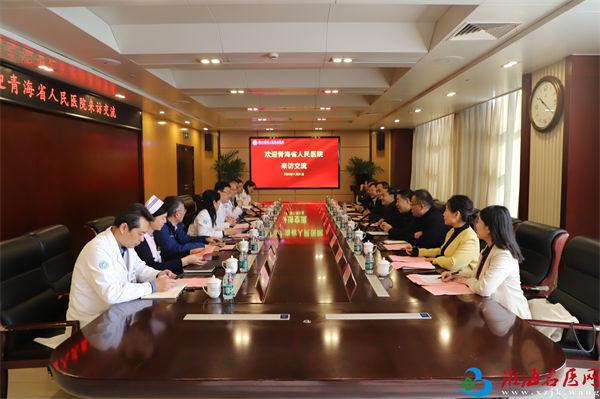 金培生代表医院对张强院长一行的到访表示欢迎,介绍了医院发展历史、发展概况、学科建设、人才培养、技术能力以及社会服务等方面情况。青海省人民医院多杰副院长简要介绍了该院的发展情况。