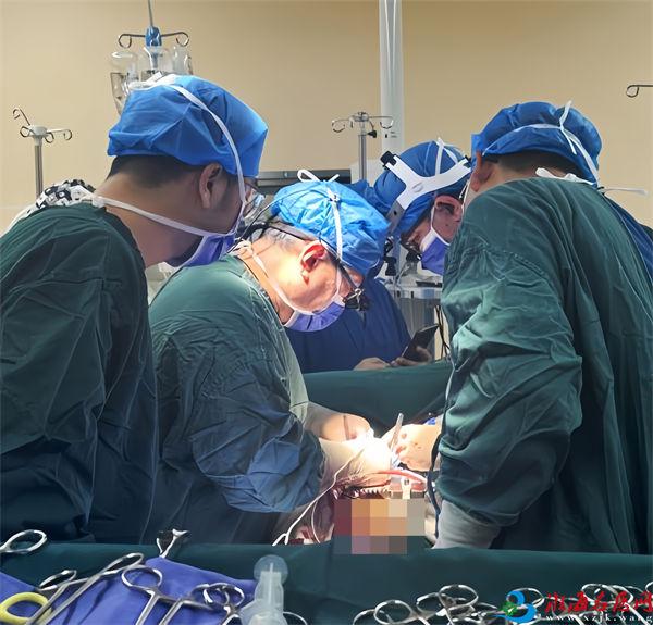 术中,薛松教授全神贯注,带领医疗团队精准处理着每一处病变,俨然技艺高超的微雕大师在精雕细琢。他手中的显微器械和比发丝还细的针线在患者的血管之间穿梭飞舞,每一针、每一线都饱含着对生命的敬畏和对患者的责任,展现出令人惊叹的精湛医术。